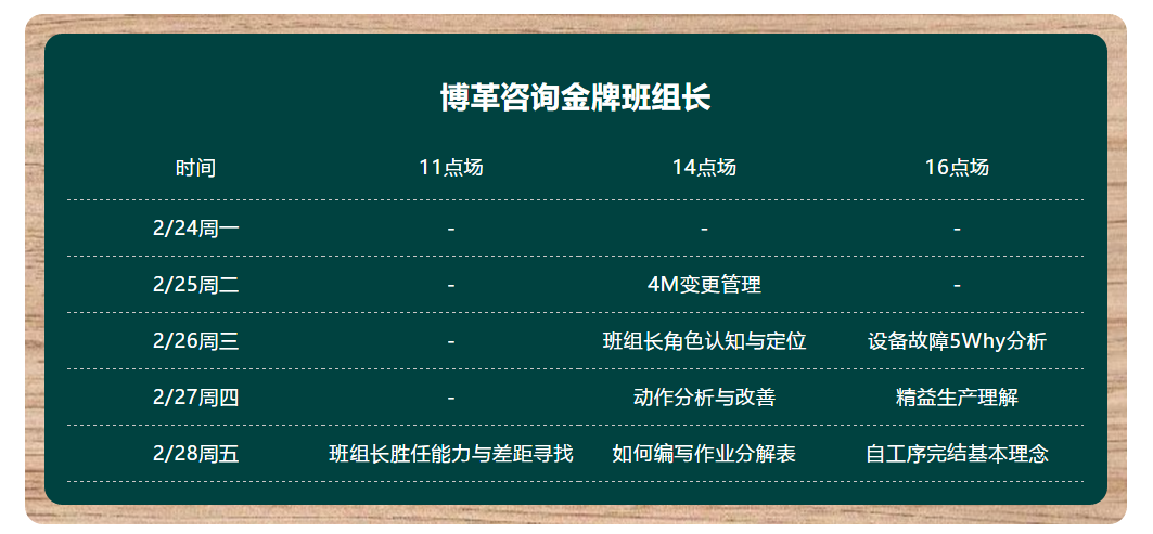 博革咨詢針對當前現狀,在疫情防控期將持續開設線上公益課程【班組建設班組培訓系列精益生產系列、六西格瑪系列等多方面、多層次的課程】,幫助企業管理者以及各個層次的管理操作人員都能進行專業學習,提升自我,更好地做好企業管理工作!