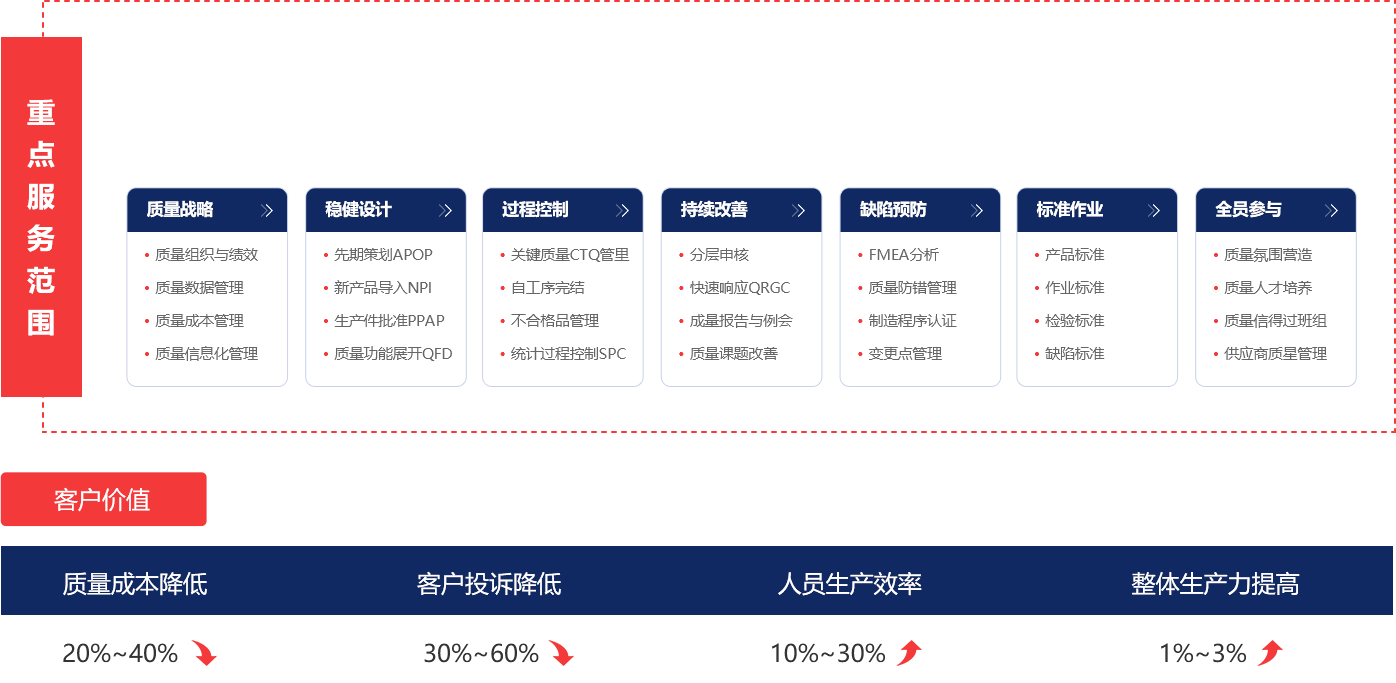 “精益質量咨詢”是快速搭建零缺陷質量文化體系,突破多種管理體系并存,碎片化,落地難,“部門墻”嚴重,
