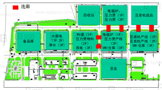本規劃項目涉及對九陽工廠A、B、C、D、E、F棟進行整體規劃,規劃內容包含對廠區進行智能精益布局、對物流及輔助設施規劃、目視化管理等服務內容, 通過精益設施規劃設計,提高物品流動速度,降低存貨損失,提高工廠對顧客的響應速度,提高資金的支出的投資收益,支持企業戰略目標的實現。