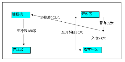 3.暫存區(qū)至拉伸工序物流距離203M,