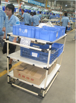 3) 物流工具和工裝的改善,減少了物流搬運(yùn)次數(shù),減少物流量。