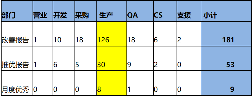 (2)完成各類改善共計(jì)181項(xiàng),革新推優(yōu)53項(xiàng),月度評(píng)比優(yōu)秀改善9項(xiàng)。