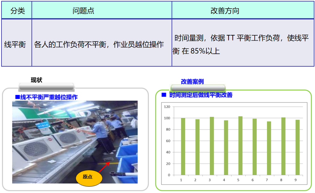 - 內外機生產VSM流程診斷→主要設備SMED診斷→設備停機診斷→主要流程工時診斷→工序庫存診斷→工序制程數據診斷