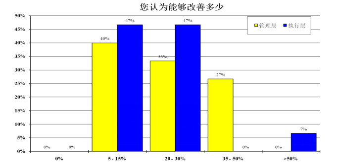 大部分的管理層和員工都認為公司的效率改進幅度可達到 ,說明管理層對目前的