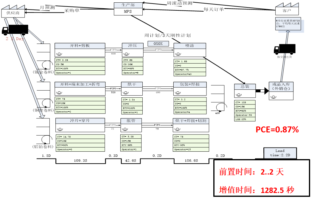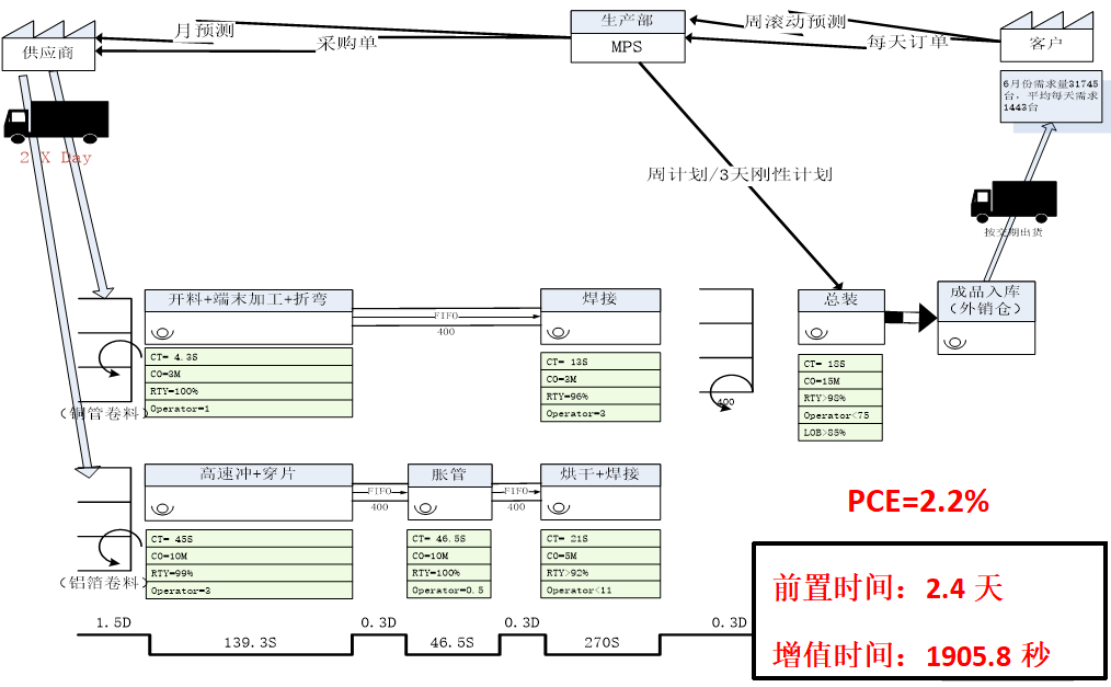 3、順德工廠內外機的生產VSM系統現狀與改善機會