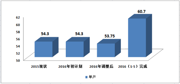 a)單產(chǎn)成果:2016年初單產(chǎn)計劃54.1萬噸/月/隊,剔除搬家倒面停產(chǎn)影響,2016年1-5月份單產(chǎn)水平60.32萬噸/月, 較年初計劃提升11.50 %