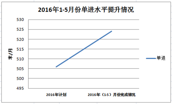 b)單進成果;2016年初單進計劃510.14米/月,2016年1-5月份單進水平524米/月 ,剔除停產(chǎn)影響,1-5月份單進實際完成549.3米/月,較年初計劃提升8.56 %