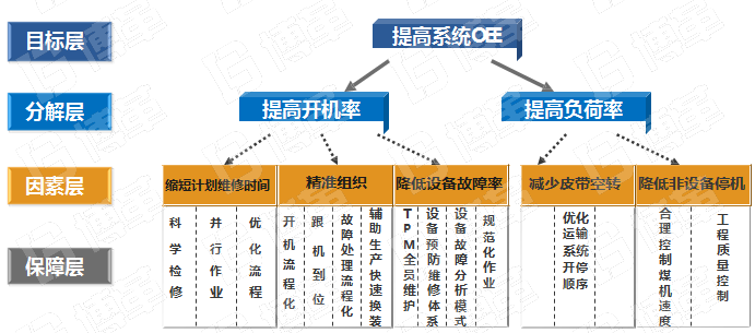 以OEE指標為引導,制定了關鍵路徑法,以提高開機率和性能開動率為兩條主線,提高設備綜合利用效率,從而提高綜采產能。